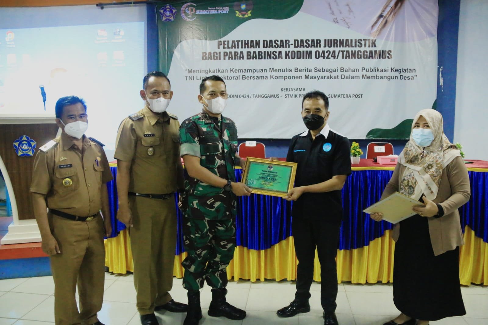 Pringsewu (Netizenku.com): 50 bintara pembina desa (Babinsa) di lingkungan Kodim 0424/TGM mengikuti Pelatihan Dasar Jurnalistik. Menghadirkan praktisi pers Andreas Andoyo sebagai narasumber, kegiatan yang merupakan kerjasama Kodim 0424/TGM dengan STMIK Pringsewu dan Sumatera Post ini digelar di aula STMIK Pringsewu, Selasa (19/04), dibuka oleh Wakil Bupati, Fauzi.