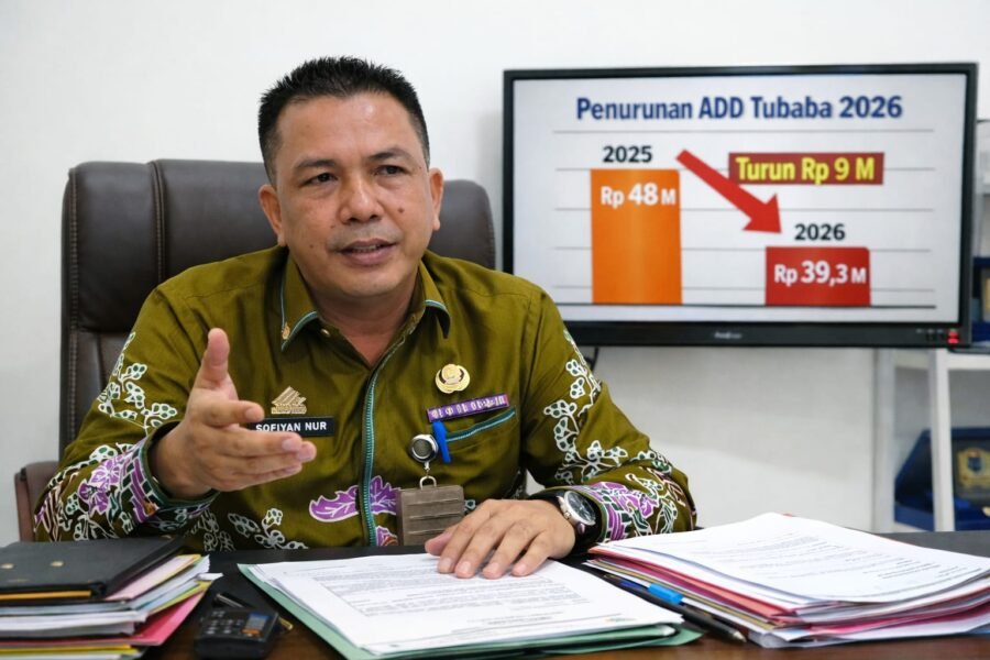Tulangbawang Barat (Netizenku.com): Kepala Dinas Pemberdayaan Masyarakat dan Tiyuh (DPMT) Tubaba, Sofiyan Nur, mengatakan bahwa besaran ADD pada 2026 mengalami penurunan cukup signifikan dibandingkan tahun sebelumnya. Pada 2025, ADD Tubaba dialokasikan sekitar Rp48 miliar, sedangkan pada 2026 turun menjadi Rp39.338.525.400 atau berkurang sekitar Rp9 miliar.