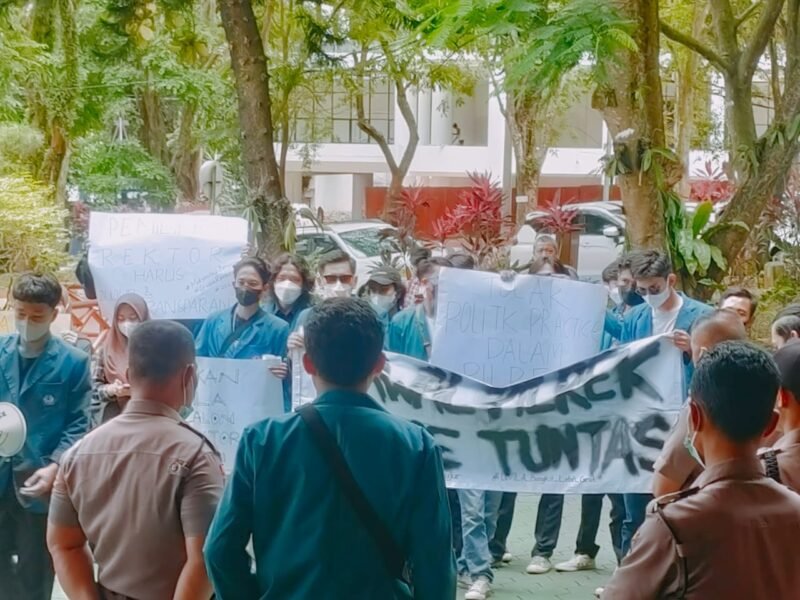 Bandarlampung (Netizenku.com): Puluhan Mahasiswa Universitas Lampung (Unila) yang tergabung dalam Aliansi Mahasiswa Unila Kawal Pilrek (AMUKP) menggelar aksi damai. Aksi tersebut dilaksanakan di Gedung Rektorat Unila, Kamis (22/12).