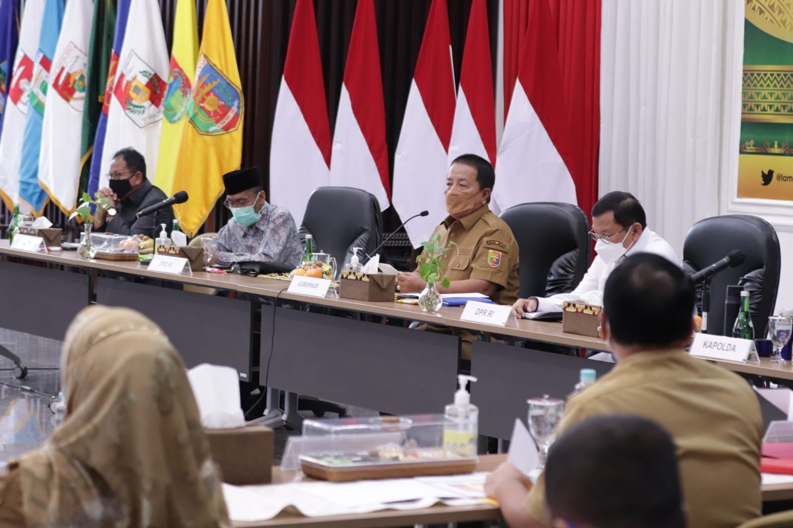 Bandarlampung (Netizenku.com): Gubernur Lampung Arinal Djunaidi memimpin rapat pelaksanaan program kartu petani berjaya (KPB), di Mahan Agung, Senin (14/2).