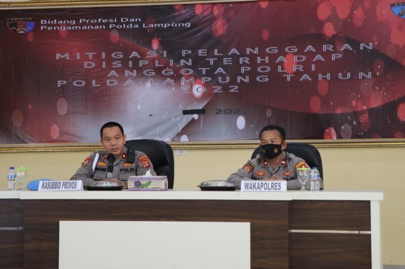 Pesawaran (Netizenku.com): Guna mencegah terjadinya pelanggaran disiplin maupun kode etik profesi Polri, Bidpropam Polda Lampung melaksanakan mitigasi penegakan, penertiban dan pelanggaran disiplin kepada anggota Polri dan ASN Polri di Polres Pesawaran, Rabu (03/08).