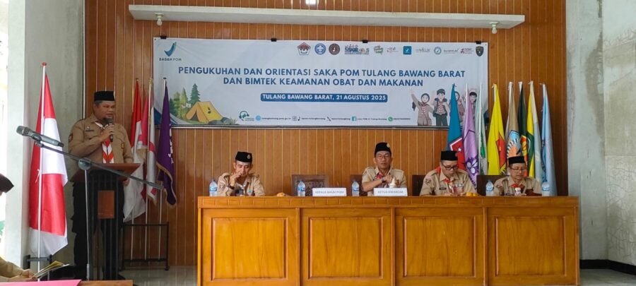 Badan Pengawas Obat dan Makanan (BPOM) Tulang Bawang bersama Kwartir Cabang Gerakan Pramuka Kabupaten Tulangbawang Barat (Tubaba) resmi mengukuhkan Satuan Karya Pramuka Pengawasan Obat dan Makanan (Saka POM) di Aula Kantor Kwarcab, Tiyuh Tirta Makmur, Kecamatan Tulangbawang Tengah, Kamis (21/8/2025).
