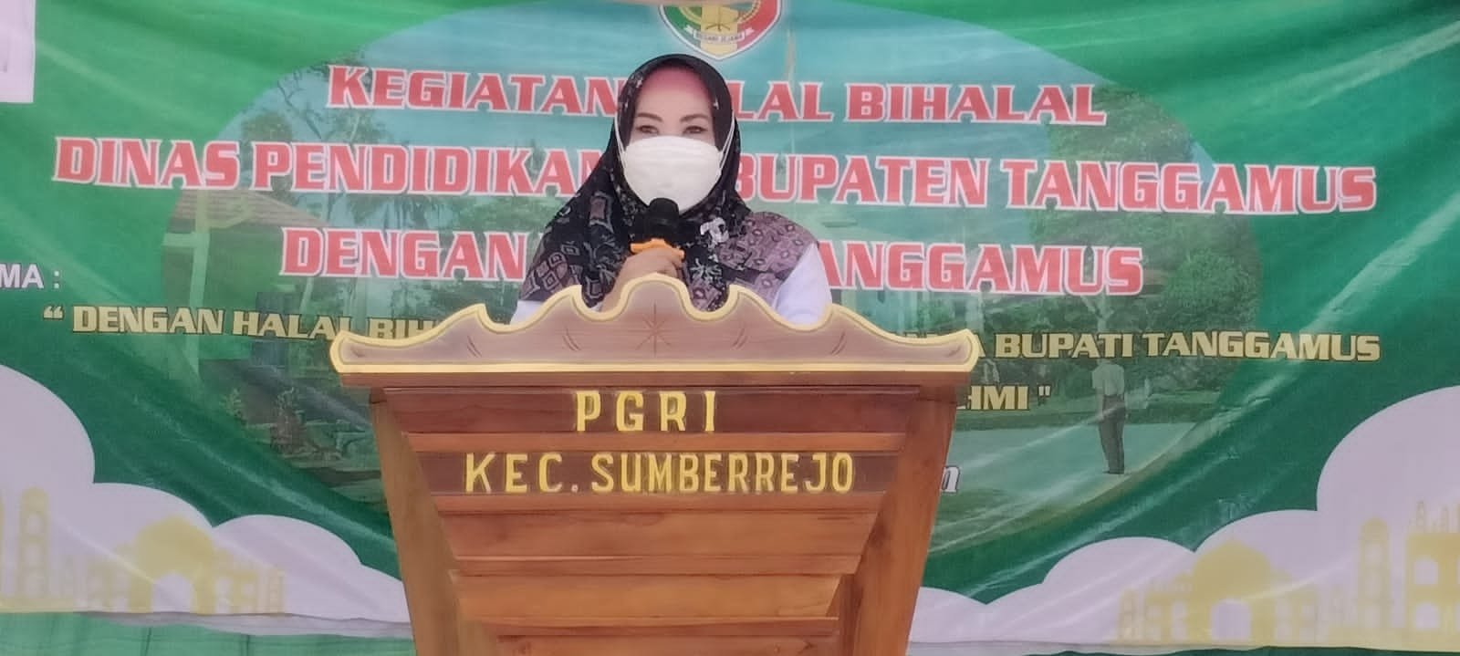 Tanggamus (Netizenku.com): Bupati Tanggamus Hj Dewi Handajani, menghadiri kegiatan halal bihalal Dinas Pendidikan Kabupaten setempat, di SMP Negeri 1 Sumberrejo, Kamis (19/05/22).