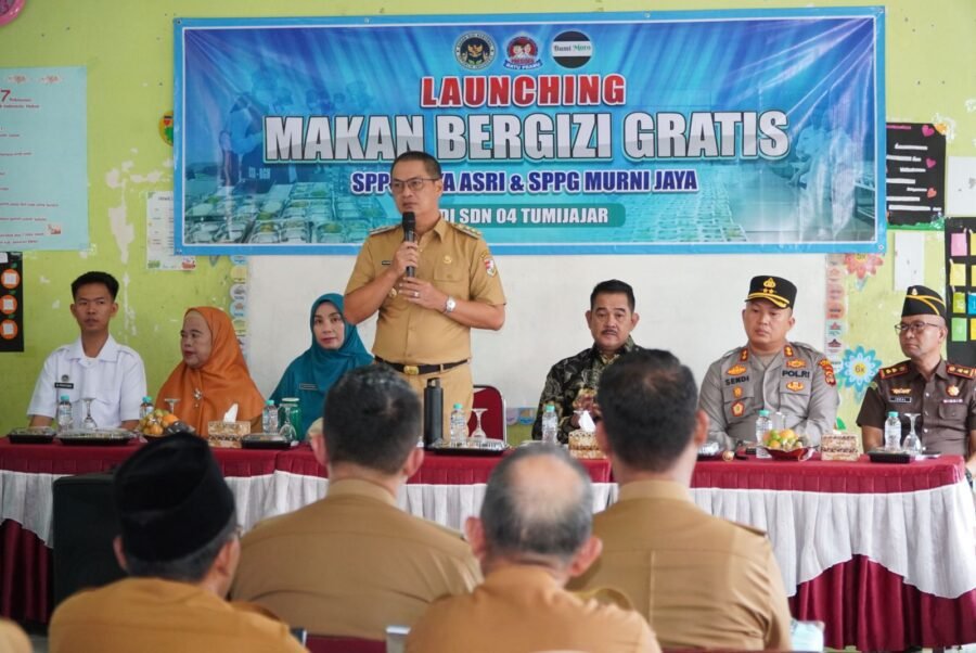 Bupati Tulangbawang Barat (Tubaba) meresmikan Program Makan Bergizi Gratis (MBG) di SD Negeri 4 Tumijajar, Selasa (26/8/2025).