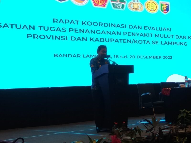 Bandarlampung (Netizenku.com): Pemerintah Provinsi Lampung melalui Asisten Ekonomi dan Pembangunan, Kusnardi, beberkan data vaksin penyakit mulut dan kuku (PMK) pada ternak di Provinsi Lampung pada Rapat Koordinasi dan Evaluasi Satgas Penanganan PMK, Senin (19/12).
