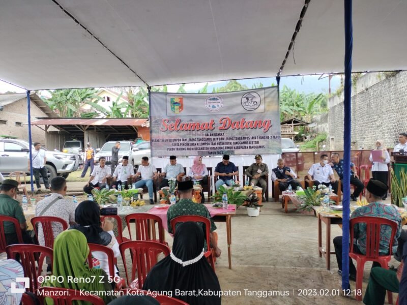 Kotaagung Timur (Netizenku.com): Bupati Tanggamus Hj. Dewi Handajani SE. MM., menghadiri HUT ke-2 kelompok tani (Poktan) Lereng Tanggamus Jaya dan pengukuhan Kelompok Tani Hutan (KTH) Tanggamus Lestari di Pekon Tanjunganom, Kecamatan Kotaagung Timur, Rabu (1/2).