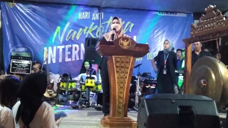 Gisting (Netizenku.com): Bupati, Hj Dewi Handajani SE MM, menghadiri malam puncak peringatan Hari Anti Narkotika Internasional (HANI) dan pencanangan desa Bersinar Kabupaten Tanggamus tahun 2022 yang dipusatkan di Rest Area Gisting, Rabu (29/6) sekira pukul 19.30 WIB.