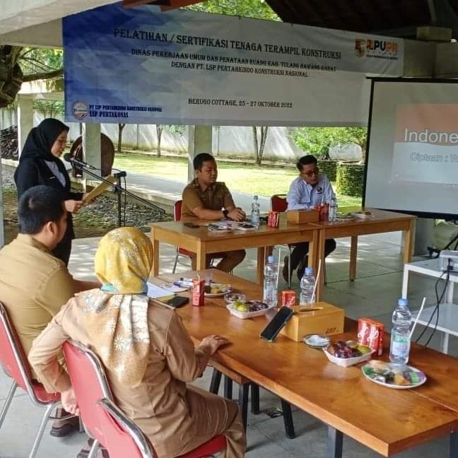 Tulangbawang Barat (Netizenku.com): Dinas Pekerjaan Umum dan Penataan Ruang (PUPR) Kabupaten Tulangbawang Barat (Tubaba) menggelar pelatihan dan sertifikasi tenaga kerja konstruksi dipusatkan di Berugo Cottage, Komplek Islamic Center, Kecamatan Tulangbawang Tengah selama tiga hari 25 hingga 27 Oktober 2022 ini.