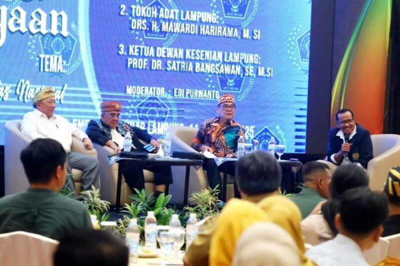 Bandarlampung (Netizenku.com): Hal tersebut disampaikan Gubernur Lampung dalam sambutan tertulis yang disampaikan oleh Kepala Dinas Komunikasi Informatika dan Statistik Provinsi Lampung saat membuka Diskusi Kebudayaan yang bertajuk “Budaya Daerah sebagai Identitas Nasional” bertempat di Hotel Emersia, Senin (11/8/2025).