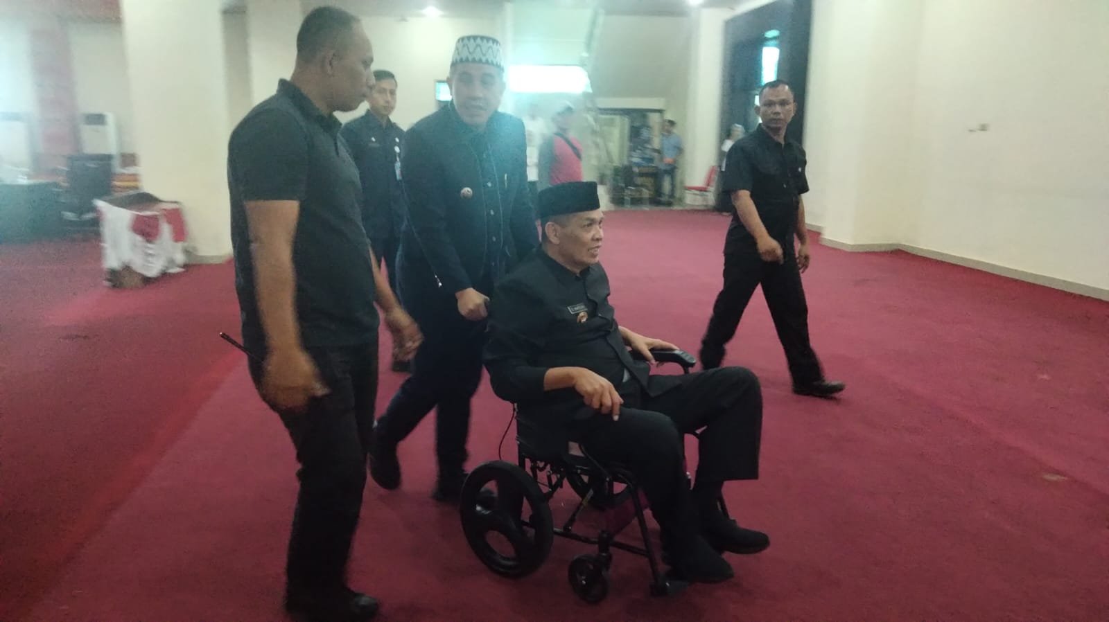 Pesawaran (Netizenku.com): DPRD Kabupaten Pesawaran gelar Rapat Paripurna Persetujuan Raperda APBD Perubahan Tahun Anggaran 2024. Ada yang tak biasa di acara Paripurna pengesahan APBDP tahun ini, nampak usai pelaksaan sidang paripurna tersebut, Bupati Pesawaran Dendi Ramdhona, mendorong langsung kursi roda wakil Bupati Kolonel (Purn) S Marzuki, yang biasanya selalu dilakukan oleh ajudannya.