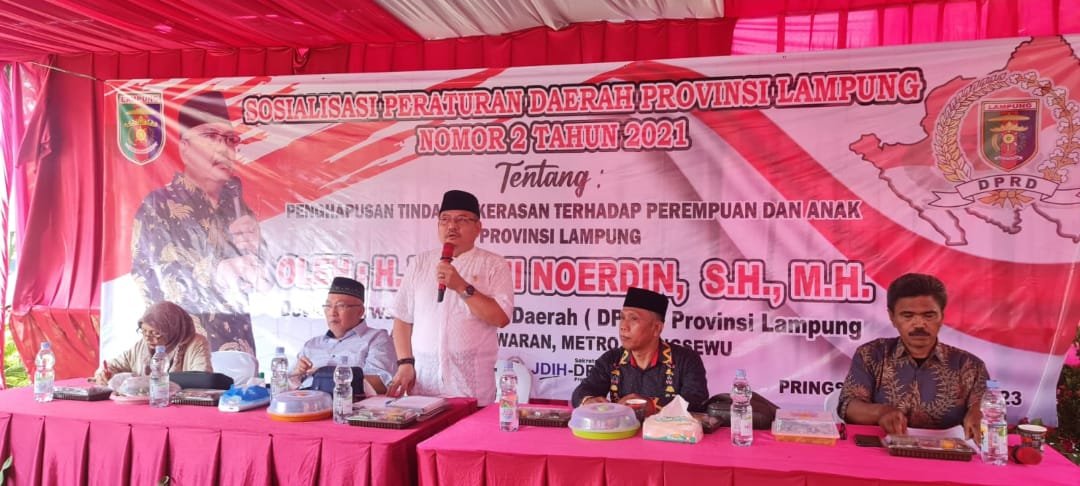 “Produk Perda yang kami sosialisasikan didasarkan pada data nasional dan khususnya Lampung. Kekerasan terhadap perempuan dan anak masih tinggi hingga saat ini,” ujar Anggota DPRD Provinsi Lampung, Watoni Noerdin, saat menyelenggarakan Sosialisasi Peraturan Daerah di hadapan masyarakat Pekon Sinar Baru, Kecamatan Sukoharjo, Kabupaten Pringsewu pada Sabtu (6/5).