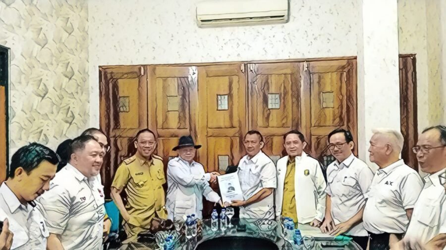 Faishol Djausal menyerahkan formulir dan dokumen pencalonan kepada TPP KONI Lampung, Senin (16/6/2025), Foto: Ist.