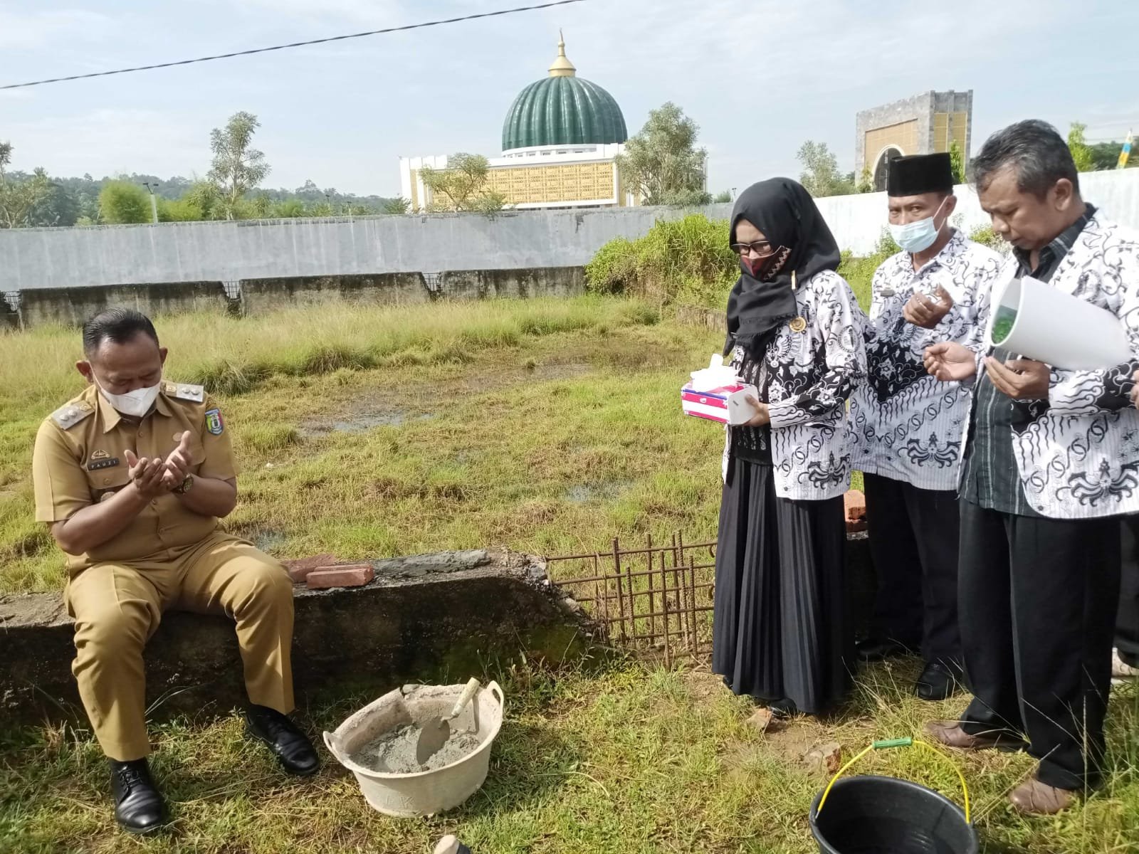 Pringsewu (Netizenku.com): Wakil Bupati, Dr Fauzi, melakukan peletakan batu pertama pembangunan gedung aula PGRI Kabupaten Pringsewu di Komplek Islamic Centre, Pagargunung, Fajaragung Barat, Senin (4/4).
