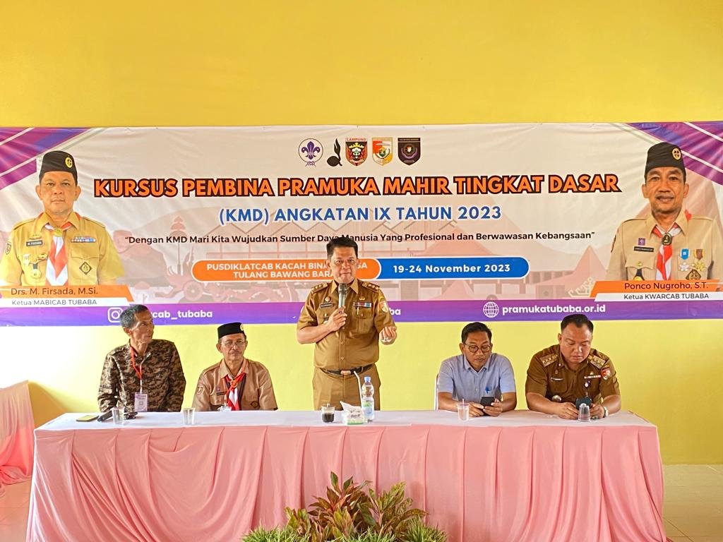 Tulangbawang Barat (Netizenku.com): Gerakan Pramuka Kwartir Cabang (Kwarcab) Tulangbawang Barat (Tubaba) menggelar Kursus Mahir Dasar (KMD) mandiri bagi kepala sekolah, guru dan anggota pramuka di wilayah kwartir cabang tersebut.