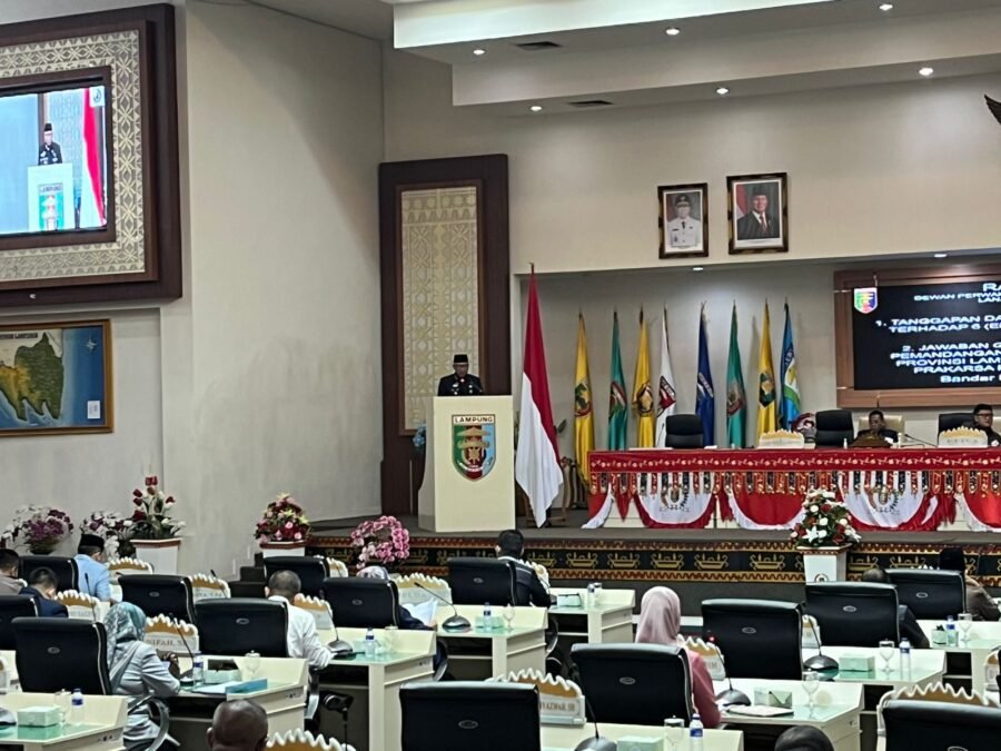 Dalam sambutannya, Gubernur menyampaikan apresiasi dan terima kasih kepada DPRD Provinsi Lampung atas pandangan serta masukan yang diberikan oleh seluruh fraksi.