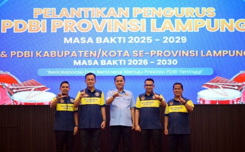 Agenda kemudian dilanjutkan dengan pengukuhan pengurus PDBI kabupaten/kota, termasuk kepengurusan PDBI Lampung Selatan masa bakti 2026–2030 yang dipimpin Hendry Kurniawan.