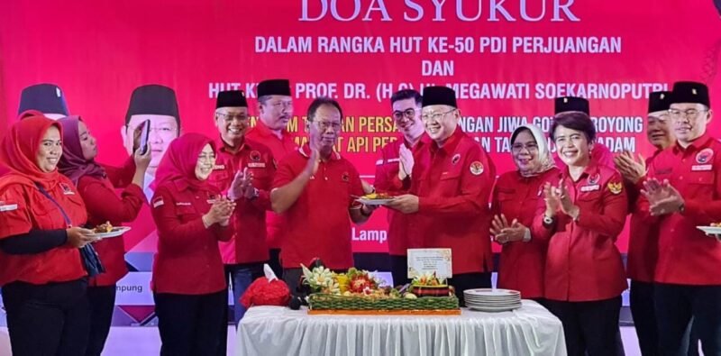 Bandarlampung (Netizenku.com): Kader Senior PDI Perjuangan Lampung Mingrum Gumay, hadiri Peringatan Hari Ulang Tahun (HUT) ke 50 PDIP sekaligus syukuran Hari Kelahiran Ketua Umum Prof. Dr. Hj. Megawati Soekarno Putri yang ke 76 di kantor DPD PDI Perjuangan Lampung, Senin (23/01)