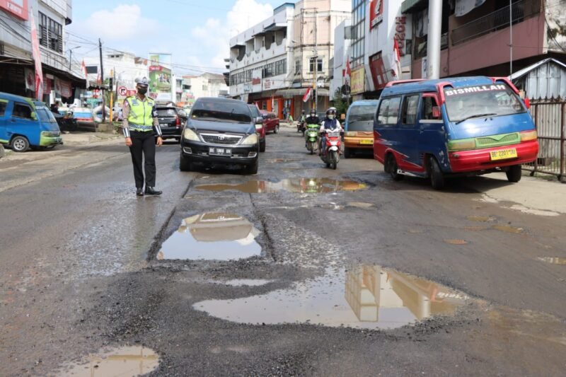 Jalan Rusak, Polres Pringsewu Imbau Pengendara Hati-hati