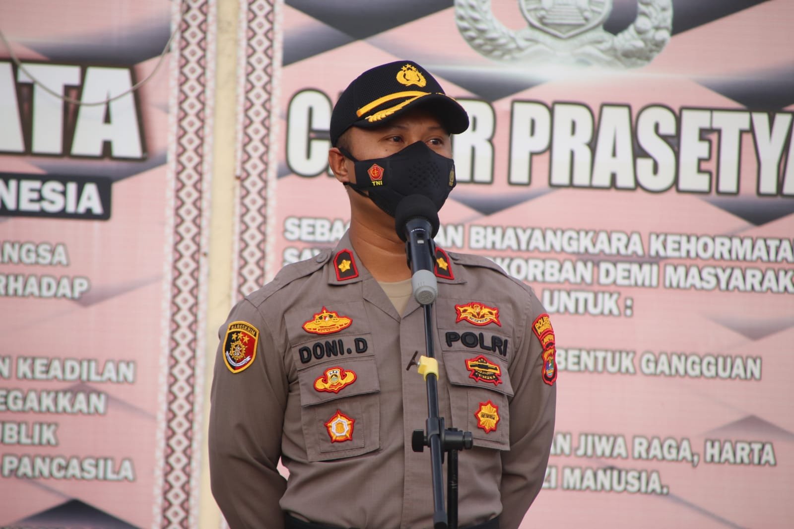 Apel dipimpin Wakapolres Pringsewu, Kompol Doni Dunggio, S.IK dan dihadiri para pejabat utama Polres, perwira staf, Kapolsek dan personel pengamanan TPS.