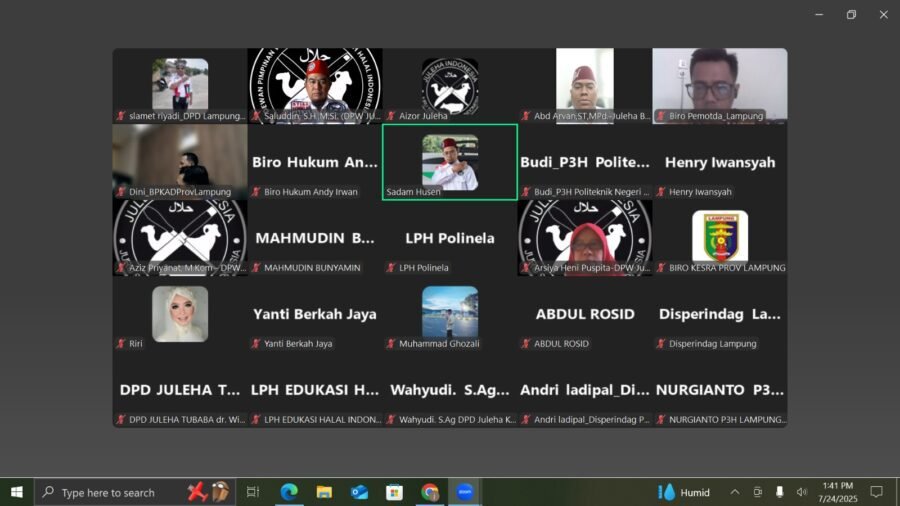 Tangkapan layar daring pada acara Rapat Koordinasi Fasilitasi Sertifikat Halal & Road Show H20. (24/7/2025). Foto: DPW Provinsi Lampung.