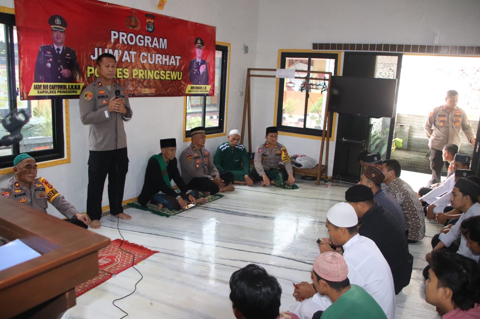 Pringsewu (Netizenku.com): Polres Pringsewu Polda Lampung menggelar kegiatan Jumat Curhat bertempat di Mushola Panggilan Sujud dua Kelurahan Pringsewu Barat, Pringsewu, Lampung pada Jumat (30/12/2022). Kegiatan dipimpin Wakapolres Pringsewu Kompol Doni Dunggio, SIK.