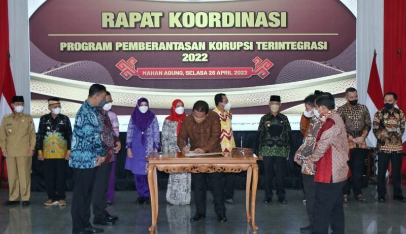Bandarlampung (Netizenku.com): Pemerintah Provinsi Lampung menggelar Rapat Koordinasi Program Pemberantasan Korupsi Terintegrasi Tahun 2022 dan Penandatanganan Pakta Integritas Barang Milik Daerah dan Deklarasi Pendidikan Anti Korupsi, di Mahan Agung, Bandarlampung, Selasa (26/4).