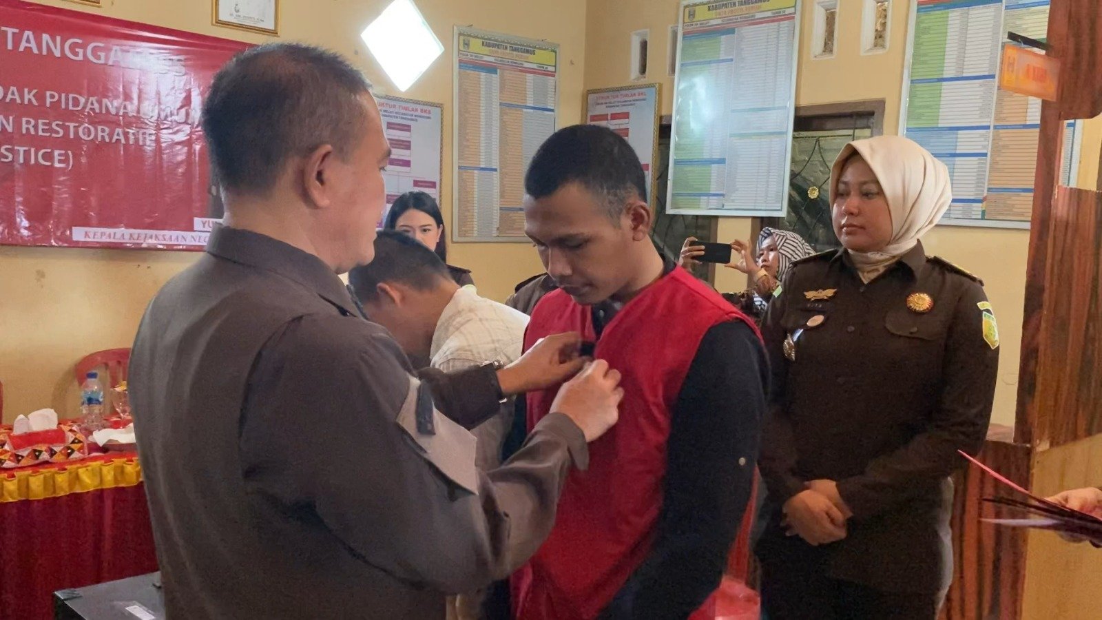 Setelah dibacakan Penyampaian Hasil Restoratif Justice, Yunardi, melakukan pencopotan rompi tahanan dan melakukan pengembalian tersangka kepada masing-masing keluarga tersangka dan saat itu juga para tersangka langsung bersalaman hingga meneteskan air mata dan sambil mengucapkan banyak terima kasih kepada bapak Kejari, lalu para tersangka juga meminta maaf dan bersalaman kepada orang tua masing masing dan pihak korban serta keluarganya.