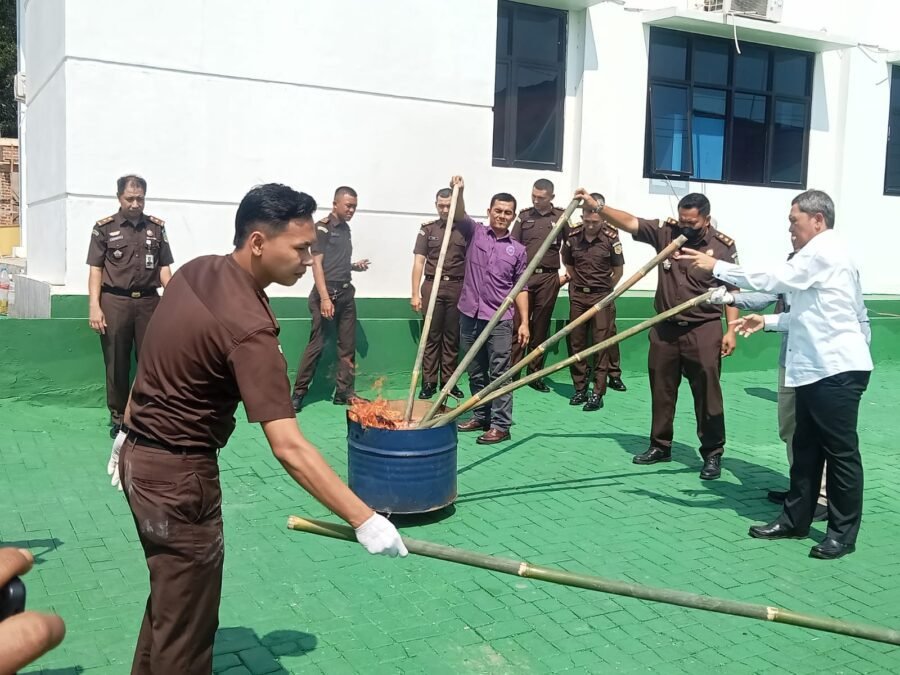 Pesawaran (Netizenku.com): Pemusnahan tersebut dipimpin langsung oleh Kepala Kejari Pesawaran, Tandi Mualim, di halaman Kantor Kejari, Rabu (25/6/2025).
