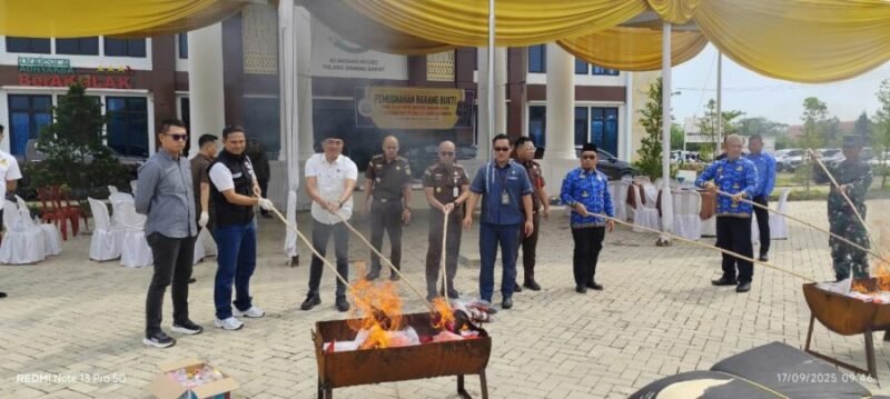 Tulangbawang Barat (Netizenku.com): Pemusnahan dipimpin langsung Kepala Kejari Tubaba, Mochamad Iqbal di halaman Kantor Kejari Tubaba, Komplek Taman Budaya Uluan Nughik, Kelurahan Panaragan Jaya, Rabu (17/9/2025) pukul 09.00 WIB.