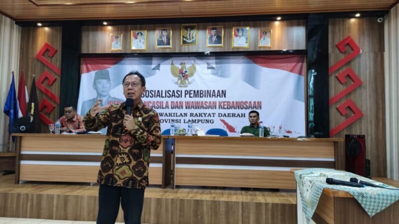 Lampung Tengah (Netizenku.com): Ketua DPRD Lampung Mingrum Gumay, menggelar sosialisasi ideologi pancasila dan wawasan kebangsaan di SMA 1 N Bandar Agung, Kecamatan Terusan Nyunyai Lampung Tengah, Jum’at (18/6).