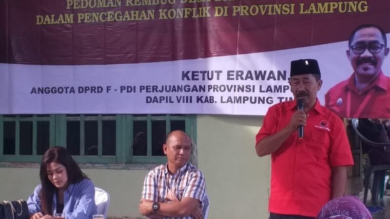 Lampung Timur (Netizenku.com): Anggota DPRD Provinsi Lampung Ketut Erawan menggelar kegiatan sosialisasi Peraturan Daerah di Desa Pugung Raharjo, Kecamatan Sekampung Udik, Kabupaten Lampung Timur. Rabu (22/6).