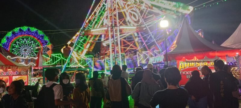 Bandarlampung (Netizenku.com): Wahana permainan kora-kora ramai antrian pengunjung Lampung Night Fair (LNF). LNF berlokasi di Lapangan Saburai, Kota Bandarlampung, Provinsi Lampung, Minggu (20/11).