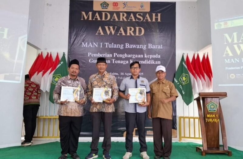Tulangbawang Barat (Netizenku.com): Penghargaan tersebut diserahkan Kepala MAN 1 Tubaba, Imam Kahfi kepada Bendahara PWI Tubaba, M. Shobari, yang mewakili Ketua PWI Dedi Priyono. Penyerahan berlangsung dalam rangkaian Hari Lahir (Harlah) ke-22 MAN 1 Tubaba yang dirangkai dengan kegiatan Madrasah Award di Aula MAN 1, Tiyuh Mulya Kencana, Kecamatan Tulangbawang Tengah, Sabtu (16/8/2025).