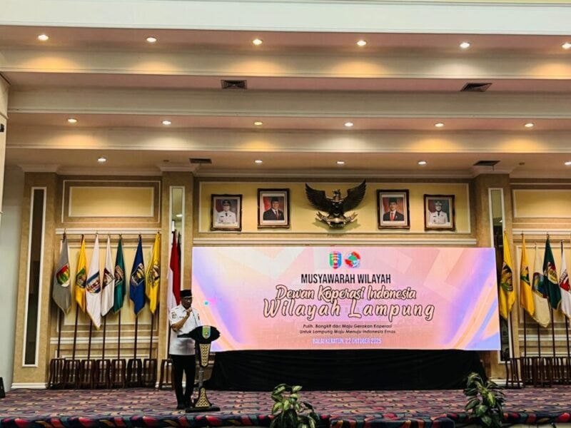Dewan Koperasi Indonesia (Dekopin) Wilayah Lampung menggelar Musyawarah Wilayah (Muswil) di Balai Keratun lantai III, Komplek Kantor Gubernur Lampung, Rabu (22/10/2025).