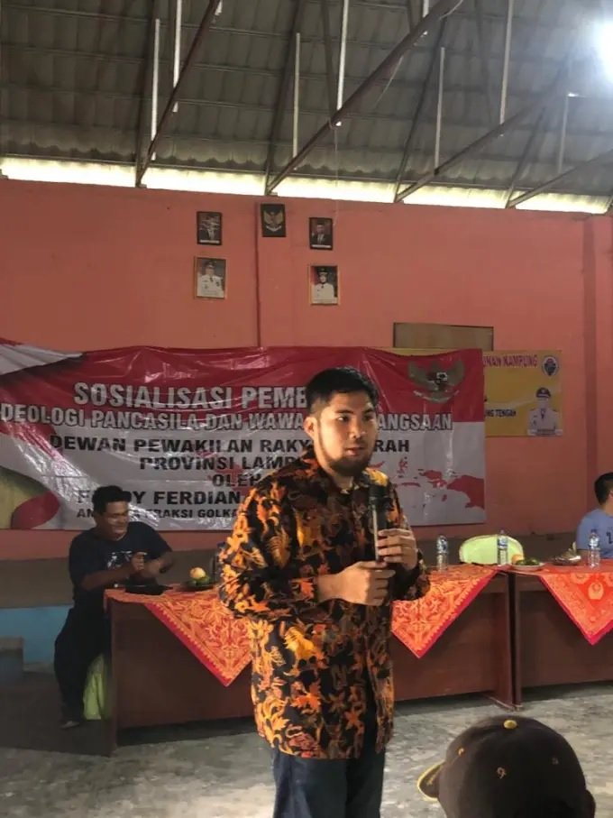 Hal ini disampaikan politisi muda Partai Golkar Lampung ini saat menggelar Sosialisasi Pembinaan Ideologi Pancasila dan Wawasan Kebangsaan di Rumbia, Lampung Tengah. Minggu, (13/11).