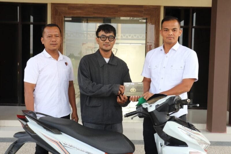 Pringsewu (Netizenku.com): Penyerahan kendaraan dilakukan di Mapolres Pringsewu, Senin (22/9/2025), oleh Kasat Reskrim AKP Johannes Erwin Parlindungan Sihombing. Gilang mengaku sempat tidak percaya saat mendapat kabar dari kepolisian.