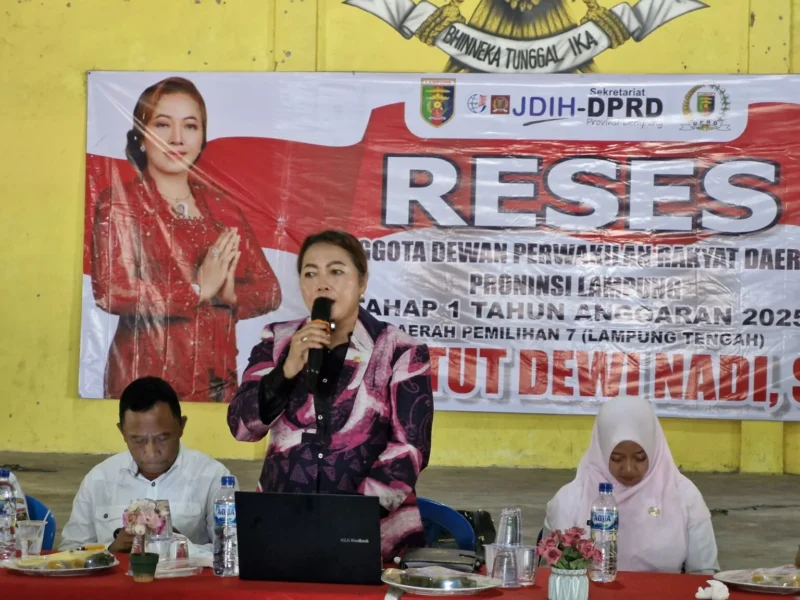Lampung (Netizenku.com): Anggota DPRD Provinsi Lampung, Ni Ketut Dewi Nadi, melaksanakan kegiatan reses di Balai Kampung Karang Endah, Kecamatan Terbanggi Besar, Kabupaten Lampung Tengah, pada Rabu, 26 Februari 2025. Dalam kegiatan tersebut, Ni Ketut Dewi Nadi menyerap berbagai aspirasi dan keluhan dari masyarakat setempat, yang mayoritas berkaitan dengan kondisi infrastruktur yang memprihatinkan di beberapa wilayah.