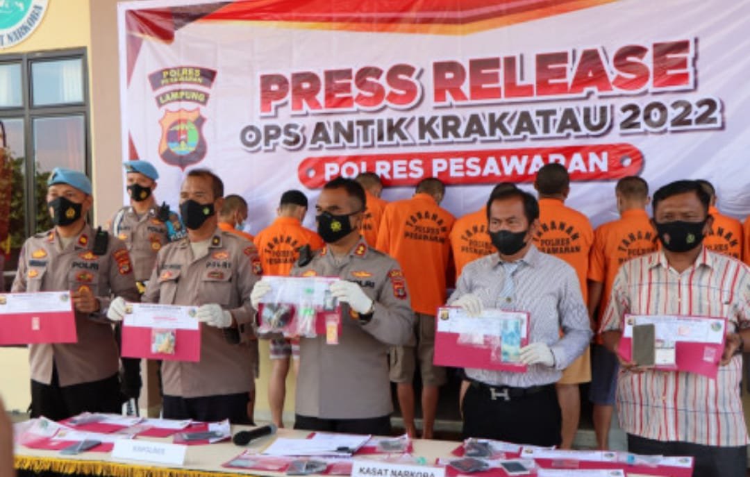 Pesawaran (Netizenku.com): Operasi Antik Krakatau 2022 yang dilaksanakan Polres Pesawaran selama dua pekan mengungkap 19 perkara. Dari kasus tersebut, polisi mengamankan 27 orang tersangka dengan satu di antaranya perempuan.