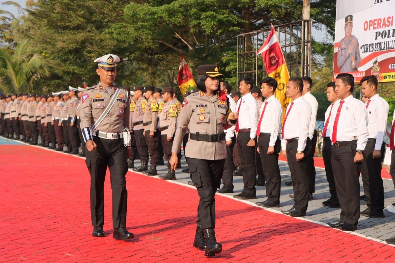 Dalam amanatnya, Kapolres Pesawaran, AKBP Maya Henny Hitijahubessy saat melaksanakan apel gelar pasukan Operasi Patuh Krakatau 2024 di Lapangan Mapolres, Senin (15/7/2024).