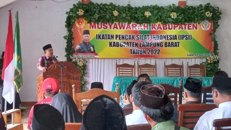 Liwa (Netizenku.com): Musyawarah Kabupaten (Muskab) Pengurus Kabupaten Ikatan Pencak Silat Indonesia (Pengkab IPSI) Lampung Barat, Minggu (1/6) di Aula RM Sahabat Utama Balikbukit, yang dibuka ketua umum KONI setempat Parosil Mabsus berjalan sukses dan menetapkan Bambang Duwi Saputra sebagai Ketua masa bakti 2022-2026.