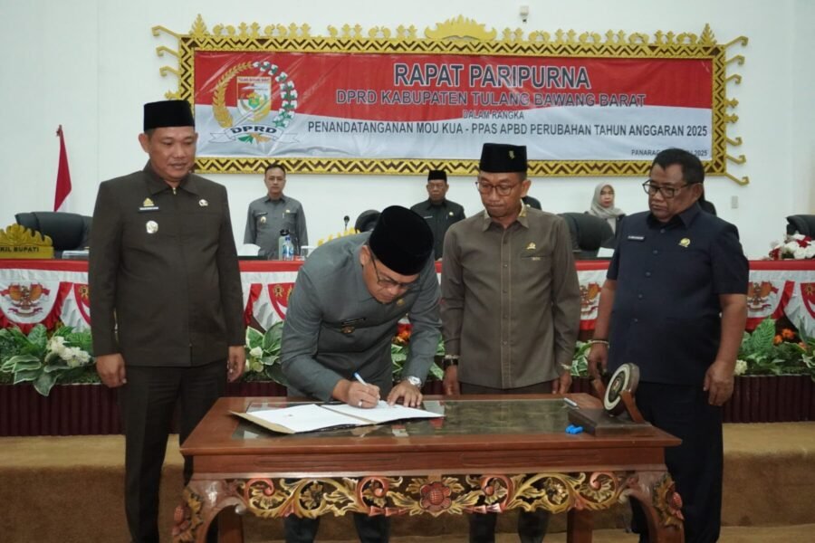 Pemerintah Kabupaten Tulangbawang Barat (Tubaba) bersama DPRD Tubaba menandatangani Nota Kesepakatan (MoU) Kebijakan Umum Anggaran serta Prioritas dan Plafon Anggaran Sementara (KUA-PPAS) Perubahan APBD Tahun Anggaran 2025.