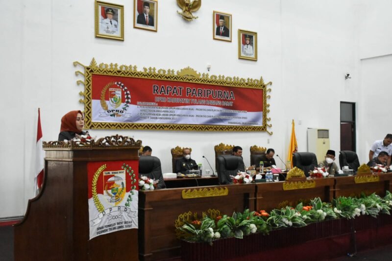 Tulangbawang Barat (Netizenku com): Pemerintah Kabupaten Tulangbawang Barat (Tubaba) memproyeksikan APBD tahun anggaran 2023 mencapai Rp923,614 miliar. Hal itu tertuang dalam Kebijakan Umum Anggaran dan Prioritas Plafon Anggaran Sementara (KUA PPAS) APBD 2023 dalam rapat paripurna di gedung DPRD, Kamis (4/8).