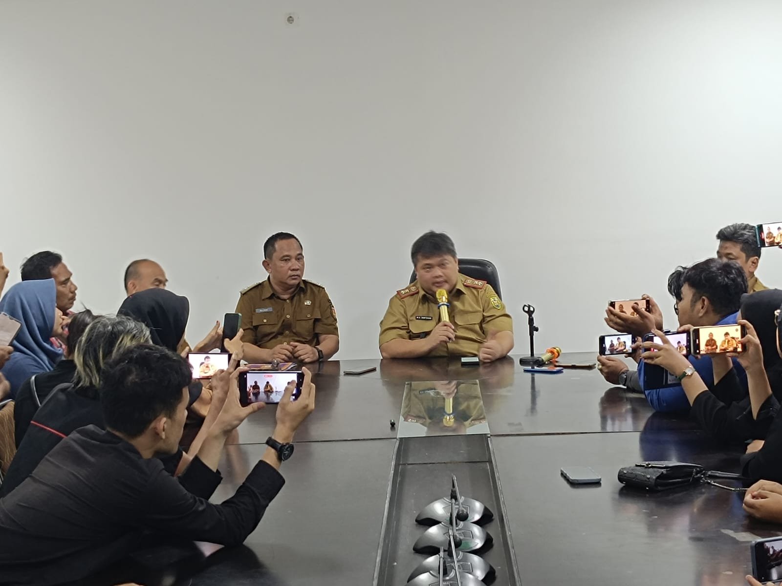 Kepala BPKAD Kota Bandarlampung, M Nur Ramdhan, menggelar konferensi pers di Ruang Rapat BPKAD Bandarlampung. (Foto: Agis)