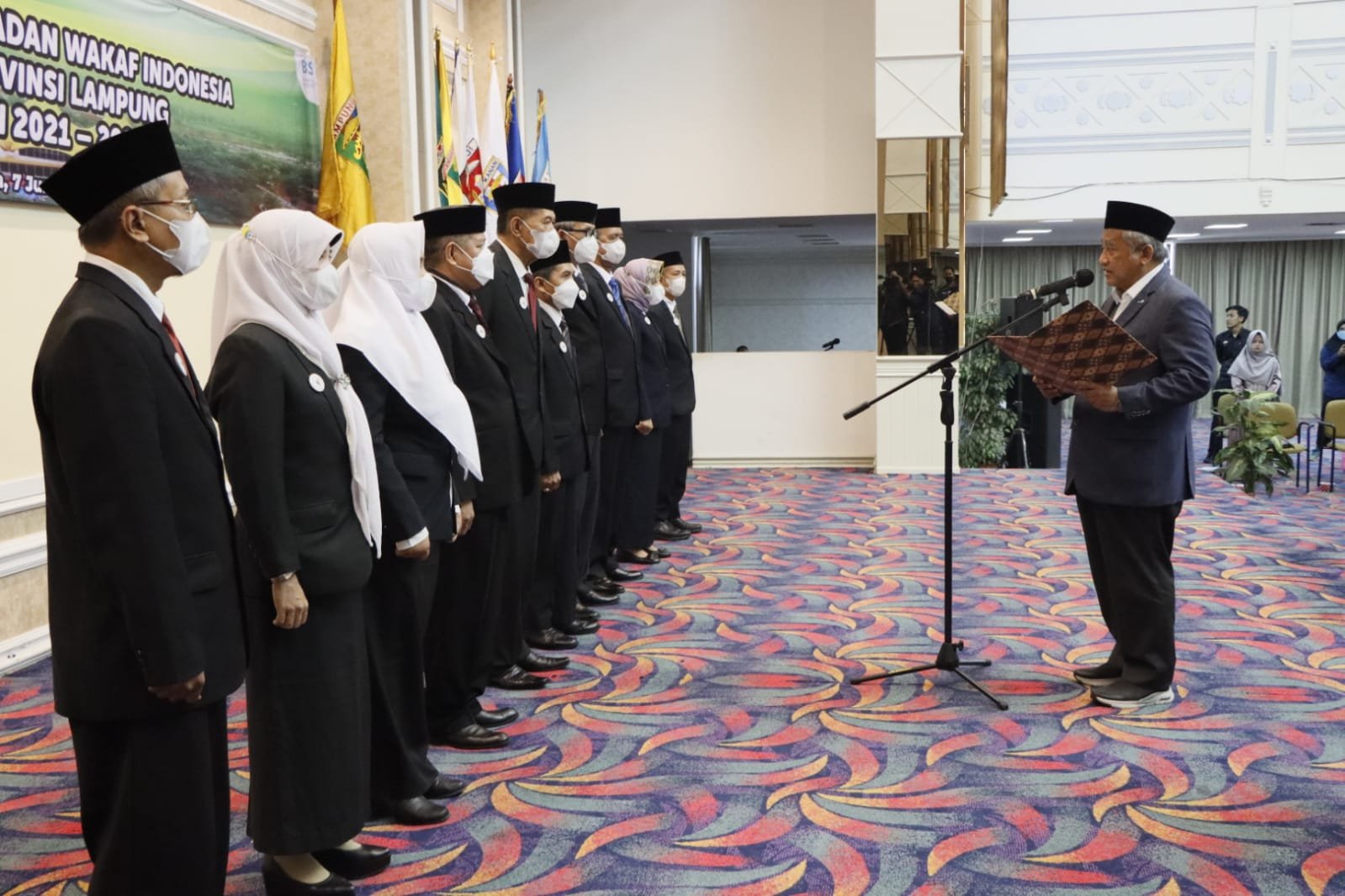 Pelantikan pengurus Badan Wakaf Indonesia Perwakilan Provinsi Lampung dilakukan sesuai dengan Diktum kesatu Surat Keputusan Ketua Badan Pelaksana Badan Wakaf Indonesia Nomor 013/BWI/P-BWI/2021.