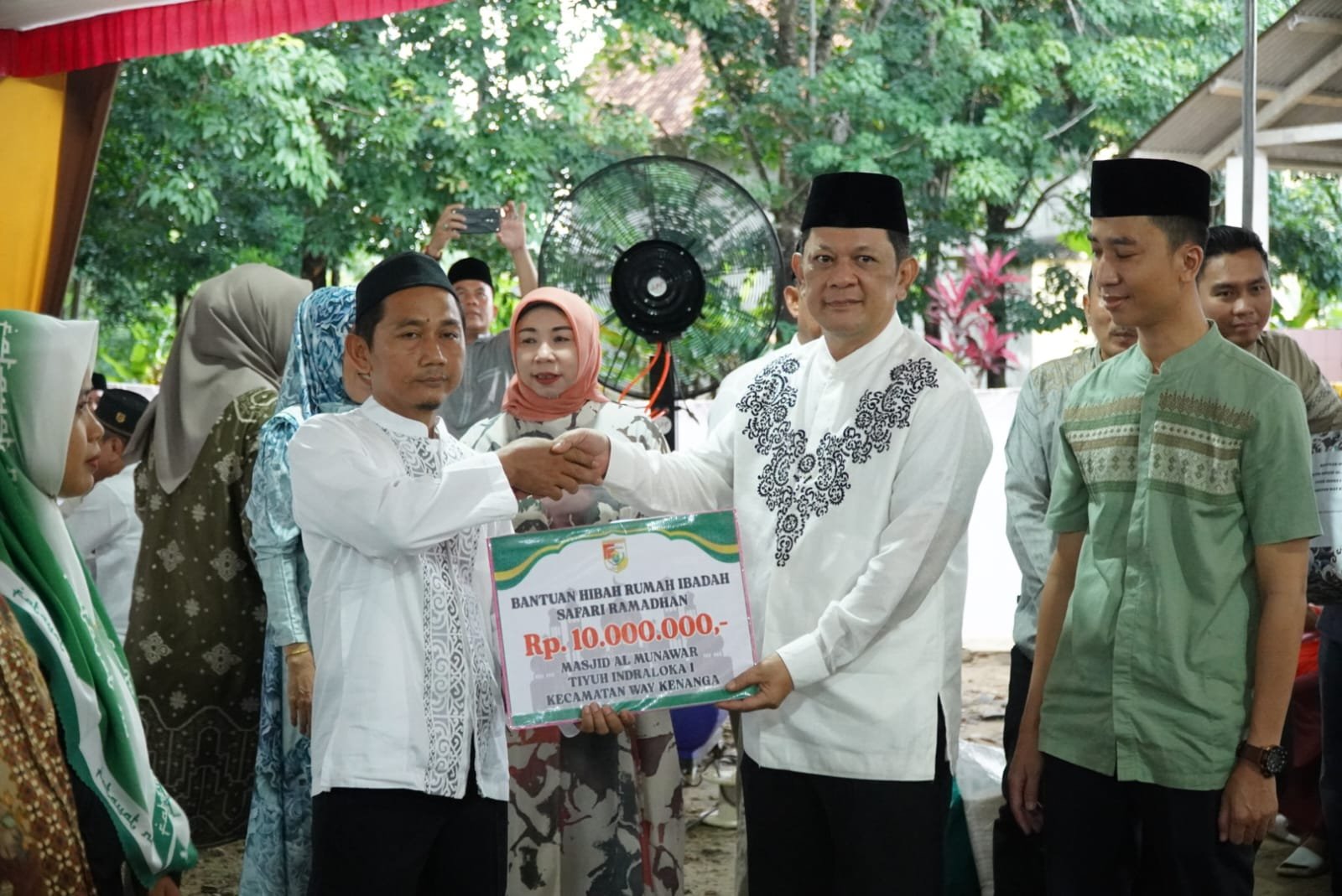 Tulangbawang Barat (Lentera SL): Penjabat (Pj) Bupati Tulangbawang Barat (Tubaba) Drs. M.Firsada, M.Si., bersama Penjabat Ketua TP-PKK Dra. Hanita Farial M.Si melakukan kunjungan Safari Ramadhan 1445 Hijriah ke Masjid Al-Munawar di Tiyuh Indraloka I Kecamatan Waykenanga, Selasa (26/3).