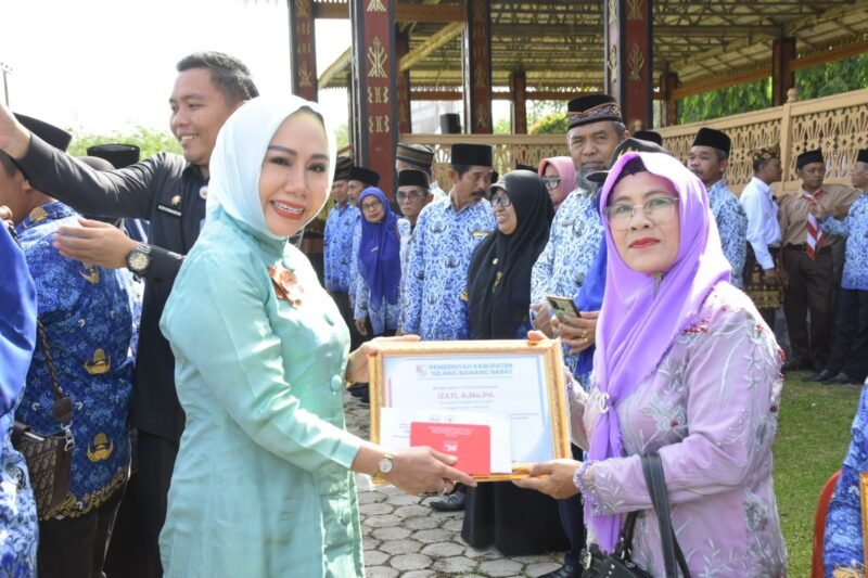 Tulangbawang Barat (Netizenku.com): Penjabat Bupati Tulangbawang Barat (Tubaba) Dr Zaidirina, SE.,M.Si menyerahkan piagam penghargaan dan tali asih berupa uang kepada purnabakti tenaga pendidik Terhitung Mulai Tanggal (TMT) 01 Januari sampai Juni tahun 2023.