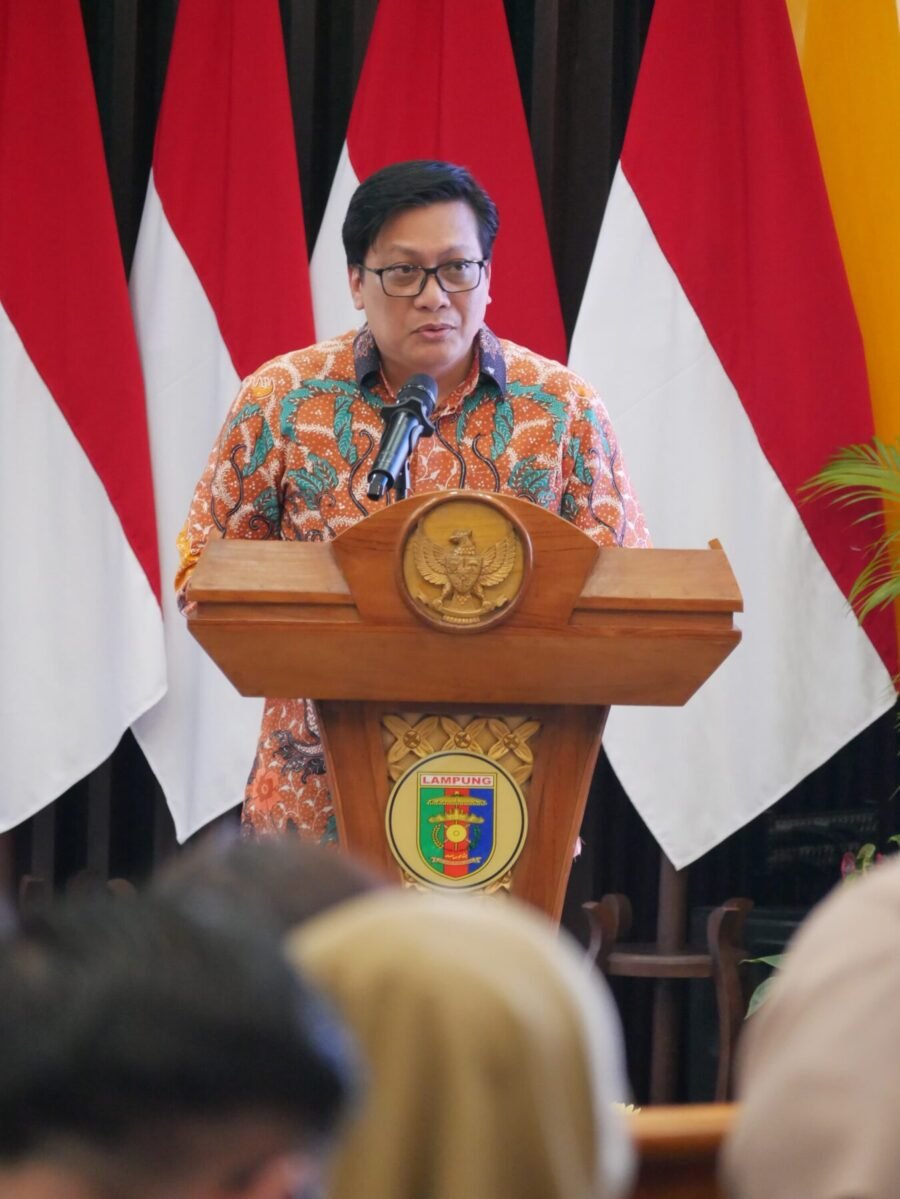 Pj. Gubernur Lampung, Dr. Drs. Samsudin S.H., M.H., M.Pd dalam kata sambutannya dengan mengutip perkataan Presiden Prabowo bahwa upaya pembangunan nasional dan transformasi menuju Indonesia Maju dan Indonesia Emas tahun 2045 terus diakselerasi dan dikawal keberlanjutannya.