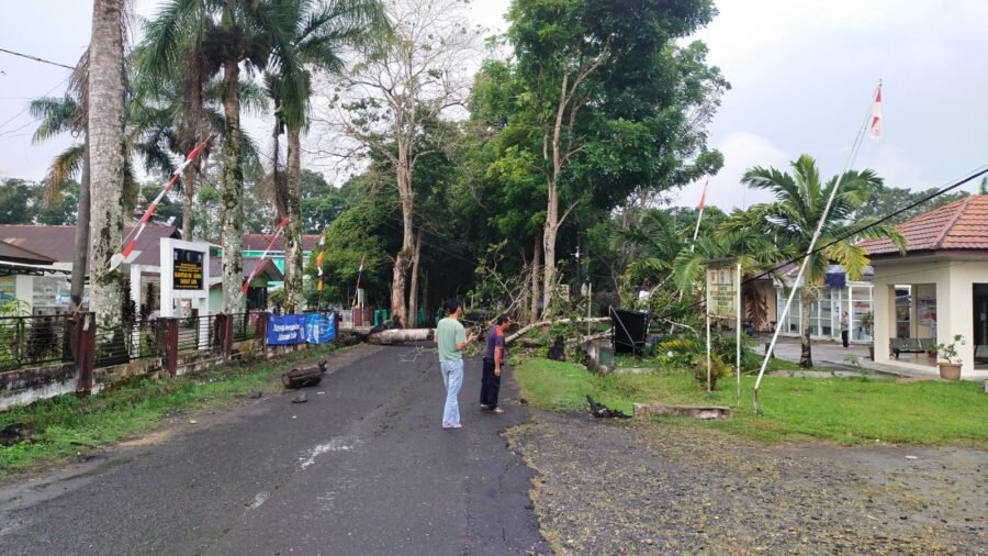 Lampung Barat (Netizenku.com): Beruntung, kejadian berlangsung setelah jam kerja berakhir sehingga tidak menimbulkan korban jiwa. Namun, pohon tumbang tersebut merusak plang kantor dan menimpa jaringan kabel listrik serta telepon di sekitarnya.