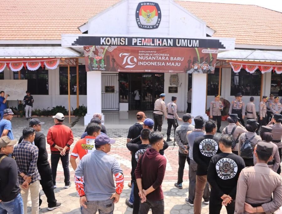Pringsewu (Netizenku.com): Polres Pringsewu menerjunkan puluhan personel guna mengamankan kegiatan pendaftaran pasangan calon (Paslon) kepala daerah Kabupaten Pringsewu ke kantor Komisi Pemilihan Umum (KPU) Kabupaten setempat, Selasa (27/8/2024) siang.