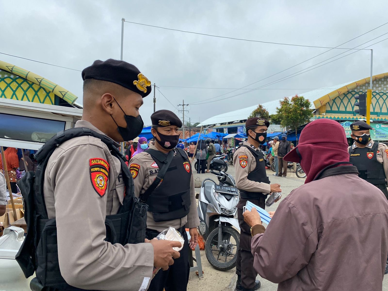 Pringsewu (Netizenku.com): Upaya antisipasi pencegahan dan penyebaran Covid-19, Polres Pringsewu melakukan operasi yustisi penggunaan masker di Pasar Pagelaran, Kecamatan Pagelaran, Minggu (23/1/22).